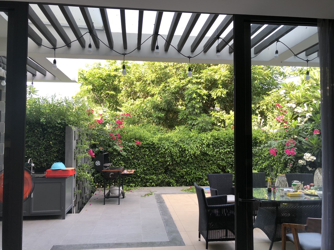 - Phòng khách thông với bể bơi có thể nướng BBQ gồm: